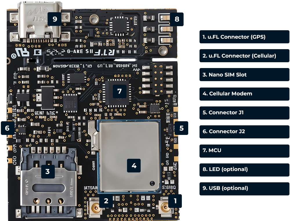 - 2 x u.FL connector for external cellular antenna, GPS antenna