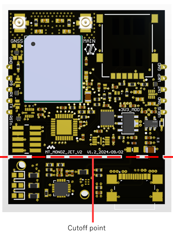 Method 1: Cutoff the optional part of the monoZ:Jet board. This is a permanent switch and it is ideal for space constrained usecases.