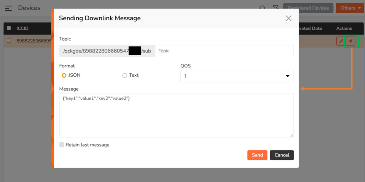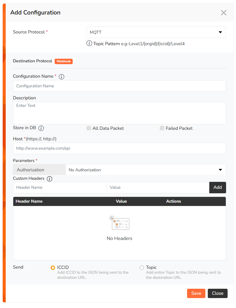 Choose Between ICCID or Topic to be sent along with the payload to the destination server