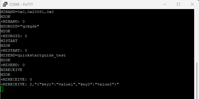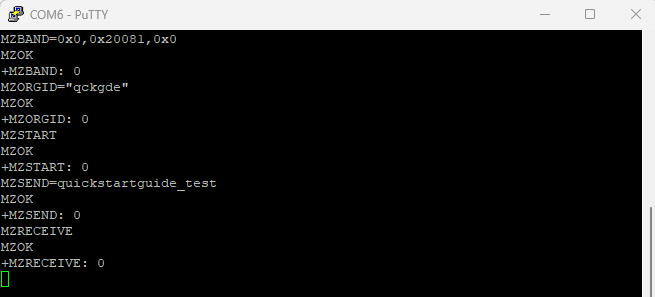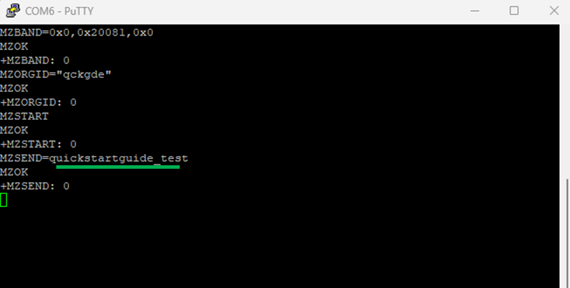 Once the +MZSTART: 0 is recieved, host can send data to monoZ:Link using the MZSEND command.