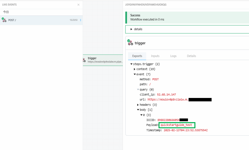 - The data is sent to monoZ:Link through a secure channel. From monoZ:Link it is then further pushed to the configured server as per its protocol configuration. The image below shows the successful receipt of data on the 3rd party server thorugh monoZ:Link.