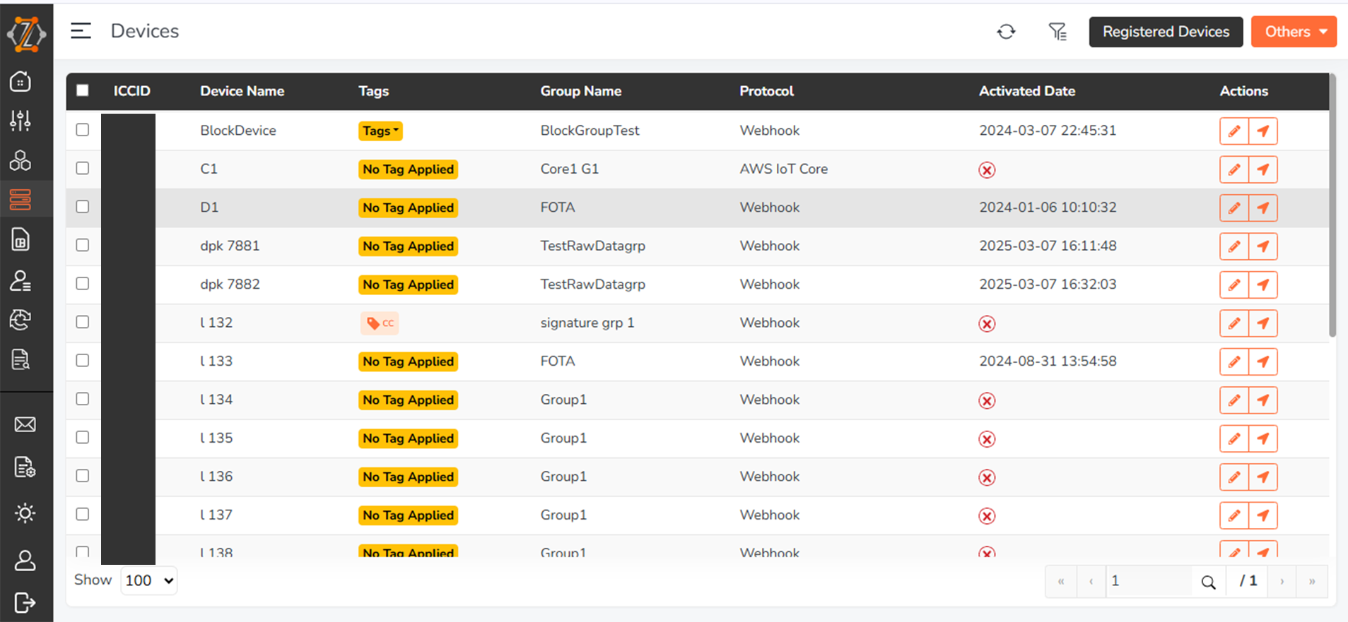 Now Devices represents the SIM used by actual device in the field. Follow the steps below to attach a newl device with a group.